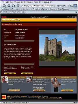 OK, now it is Tuesday night, March 12 . . . Wait! It's already March 13 in New York!!! My picture was on the Kodak web site already! I started sending out email and messaging anyone who was around. I was "talking" with people even as I was falling asleep. *YAWN* One of those I "talked" to was Geoffrey who sent me screen captures of MY picture of the day on kodak.com. (He also taught me how to do it for myself!) |
