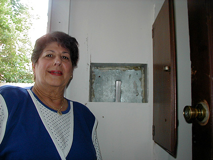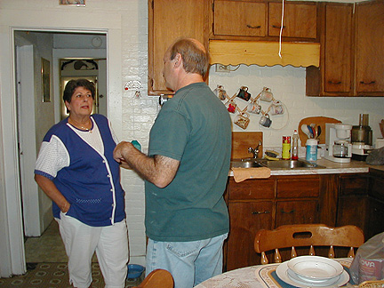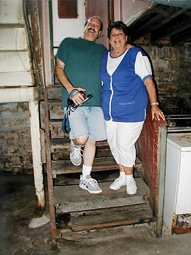 | Then we went across the street to his grandparents' house where he spent lots of time. (And Annette grew up there!) It took the man who lives there about a minute to offer them a look around the old place, inside and out. Lenny and Annette were just loving remembering their past. |