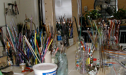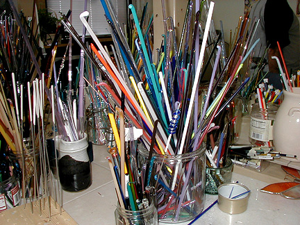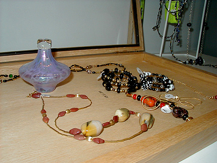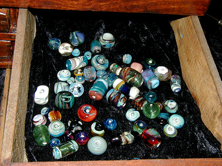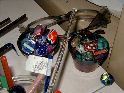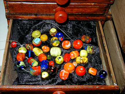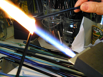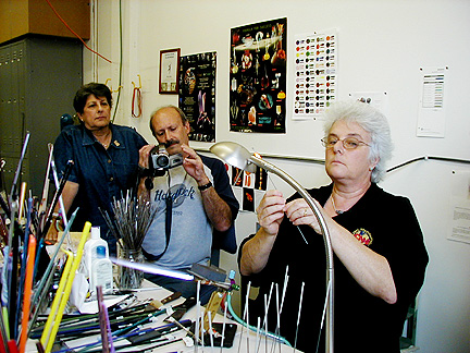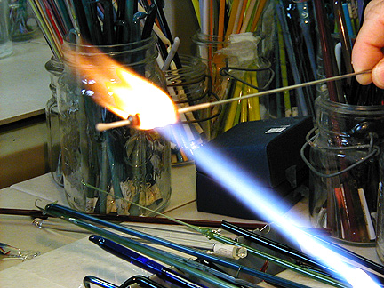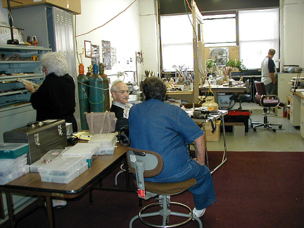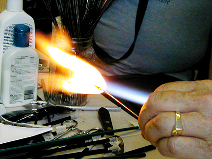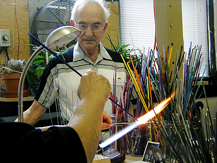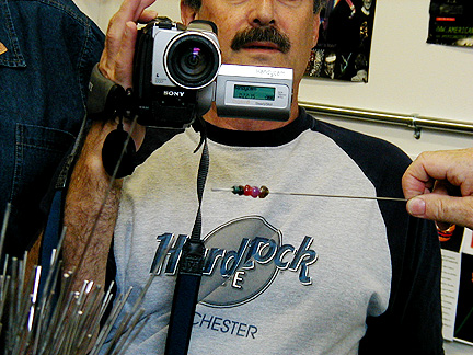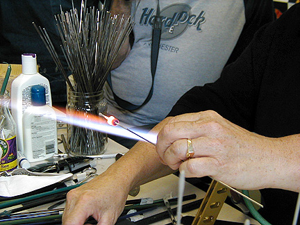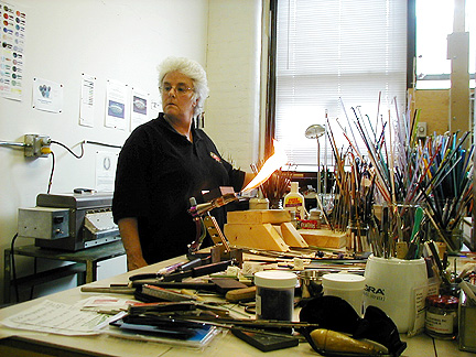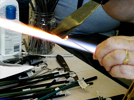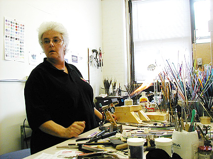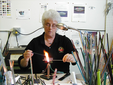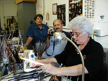 | Marilynne, thank you for showing us your new studio and what it's like to make glass beads. Maybe I'll try it . . . some day . . . Thanks again for our Rochester shirts. We will wear them proudly! |